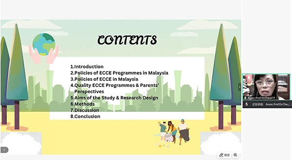 Among the speakers, Assoc. Prof. Chew Fong Peng from University of Malaya, Malaysia, delivered a speech on Parent's Perceptions on Policies of Early Childhood Care and Education Programmes in Malaysia.