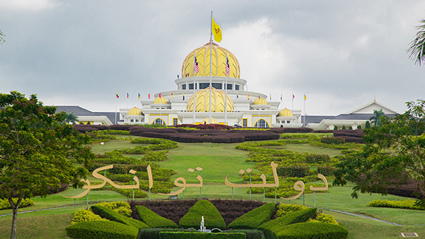 The National Palace is the official residence of the King of Malaysia. It is located along Jalan Tuanku Abdul Halim (formerly Jalan Duta) near Taman Duta, northwestern Kuala Lumpur. The palace opened in 2011 and replaced the old Istana Negara which was located at a different compound in central Kuala Lumpur. The palace complex has an area of 97.65 hectares, 22 domes, and is split into three main portions: the Formal Component, Royal Component and Administration Component. There are 3 entrances to the palace. The first is through the main gateway entrance via Jalan Tuanku Abdul Halim flyover for the Yang di-Pertuan Agong, Raja Permaisuri Agong, Sultan and Sultanah of the State, Yang di-Pertua Negeri, Diplomats and Government Heads, Prime Minister and Deputy Prime Minister and wife. The second entrance is located at Jalan Semantan-Dungun serves as a main entrance for the Royal Guest and VIP. The third entrance at Jalan Sri Hartamas is meant for members of the general public that have an appointment with the Yang di-Pertuan Agong and Raja Permaisuri Agong and also the Palace Administration's Staff.